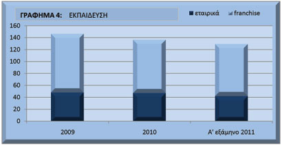Αρνητικό πρόσημο στο χώρο του franchising παρουσιάζει ο χώρος της εκπαίδευσης, της εστίασης και της προσωπικής φροντίδας.